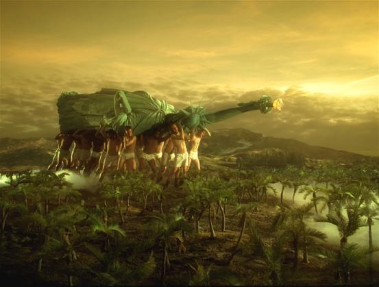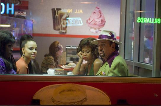 Upon their arrival, Max and Jude are thrilled to meet their sexy new landlord, Dana Fuchs’ Sadie in a role created by Taymor especially for the singer who’d starred in Love, Janis on Broadway (IMDb). However, the youthful innocence on display early on ends abruptly when Lucy learns that Daniel is dead and simultaneously we cut to the Detroit riots. There in a stirring rendition of “Let It Be” first sung by a child who becomes a victim himself which grows into a heartbreaking gospel chorus, we witness Lucy grieve on the east coast along with the mourners in Michigan. We also meet Martin Luther McCoy’s Jo-Jo as he leaves Detroit for New York City and catch our first glimpse of both the era's darkness to come and Taymor’s film from the “Let It Be” and “Come Together" sequences as Jo-Jo begins his own quest east. While incidentally, John Lennon first wrote "Come Together" to be the official gubernatorial campaign song for Timothy Leary before his campaign fell apart due to his activities with drugs, to Generation X, it was an even more recognizable song due to its cover by Aerosmith, who’d performed it in the film version of Sgt. Pepper (Harry, 170). In Universe, the song is performed by Joe Cocker, who also appears in a series of cameos as a bum, pimp (below), etc. Cocker is perhaps best known to Beatles fan for his cover of “With a Little Help From My Friends,” and in lending a little help to Universe, he helps bridge the tonal transition that moves Taymor’s film out of the first act and into the next. It’s also the number that serves to link Jo-Jo with Sadie, Max and Jude and also ends with the introduction of Prudence to the group as she comes in “through the bathroom window,” to quote another Beatles lyric. Later, preferring to spend the summer with her brother Max in New York rather than visit Europe with her wealthy parents, Lucy leaves her suburban existence, ironically trying to reassure her worried mom that, “the big bad city’s not gonna get me.” Taymor makes this line instantly ironic when she cues a passionate performance by Sadie singing “Why Don’t We Do It In The Road?” as Lucy meets everyone at the Café Huh? which is a reference to Greenwich Village’s famous Café Wha? No longer dressed in knee socks, neatly pressed blouses and skirts, we see a much different looking, casual and more subdued Lucy, still trying to come to grips with Daniel’s death. Picking up on her mood, Jude impulsively leaves his date to go for a walk with Lucy wherein she confesses that a military order has arrived by mail for Max and she can barely bring herself to give it to him. Helping her out, Jude and the others sit at a diner with Max all swapping stories of possible ways to get out of the draft, ranging from swallowing cotton balls to make a shadow on an x-ray to eating beets so that his urine will resemble blood, but Jo-Jo, who has already served tells him that even if he burns his letter, he still has to report. While Max continues to joke about the situation with the rest, over the following days Lucy finds a shoulder to lean on in the form of Jude as they grow closer together and eventually become lovers. Just as inevitably as they fall into one another’s arms, the day arrives when Max needs to report to headquarters to get checked over by Uncle Sam. In the film’s most politically charged, masterfully audacious and impressive sequence set to “I Want You/She’s So Heavy,” that seems to have been envisioned by several wholly original revelations by Taymor, relating the lyrics to the military process and war. Additionally, she reveals in the DVD how she began imaging it piece by piece, sometimes coming up with a new idea each day. The lyrics “I Want You” which double as Uncle Sam’s famous tagline come to life via animation as the poster shouts at Max upon his entrance and as Taymor noted on the DVD, he gets evaluated and stripped via rough treatment as his individual identity is quickly taken away in favor of being part of the "army of one." As you watch the clip which follows the photos, note the way that every element falls into place, for example when the cubicles drop down from the ceiling in perfect unison and everything cuts smoothly from one actor to the next in military precision. And in its boldest moment, as the lyrics turn to “She’s So Heavy,” Taymor produces a brilliantly unexpected twist in showing the men all carrying the heavy Statue of Liberty upon their backs while stripped down to their boxer shorts, taking on the country’s heavy demands on their innocent, young shoulders as if—she reveals on the DVD-- they’re slaves in ancient Egypt. Moving from the impending doom of Max’s future to the power of love and compassion, the characters intervene when they realize that Prudence has locked herself in the closet and proceed to lure her out with “Dear Prudence,” which John Lennon had written for Mia Farrow’s reclusive, introverted sister when he “was asked to contact her and make sure she came out more often and mixed with people,” after she became too caught up in studying under Maharishi Mahesh Yogi (Harry, 189). While it’s usage in Universe is certainly an ironic twist given her orientation, it’s a sweet scene that shows the love the roommates living under Sadie’ s roof have for one another, which epitomizes the spirit of peace and love of the 60’s flower children. |